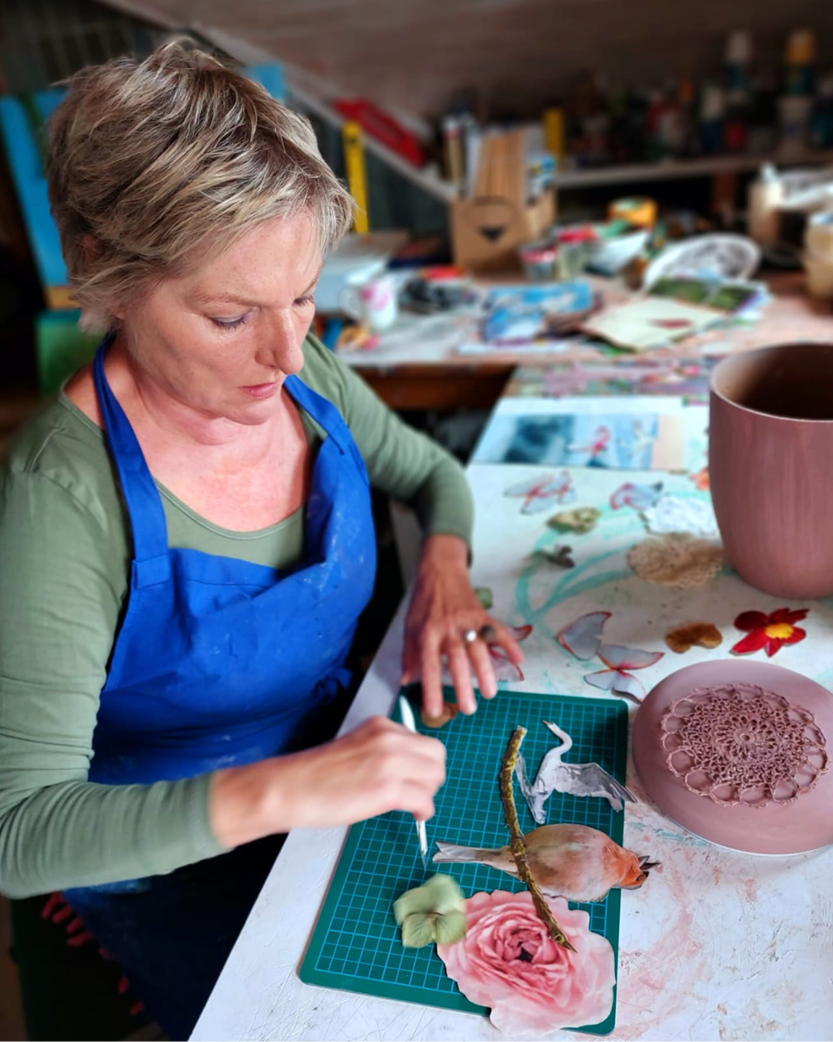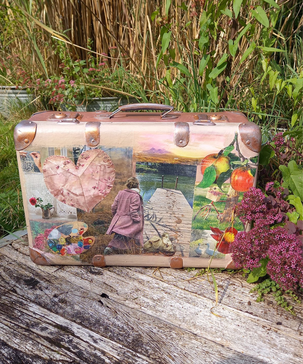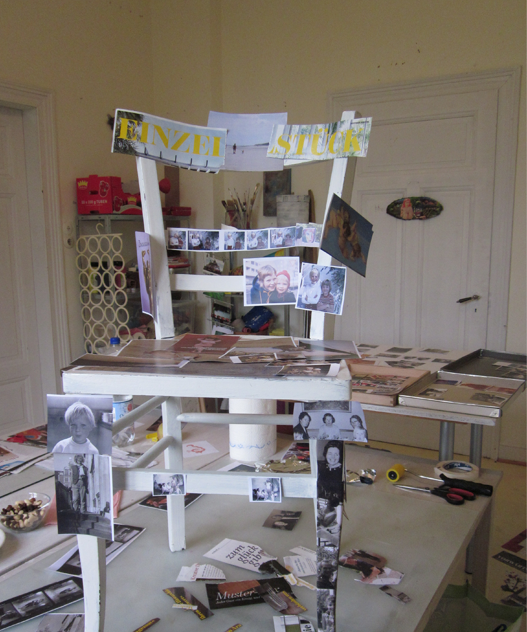 Mein Schwerpunkt ist die „Objekt-Collage“, sie dient dem Ausdruck von Erinnerungen, Gefühlen und Gedanken. Sichtbar gewordene innere Bilder, für „Abschied“ und „Neuanfang“. Es entstehen dreidimensionale Bilderbücher, Lebensgeschichten und Zukunftsvisionen auf Koffern, Stühlen und ganz persönlichen „Erinnerungsgegenständen“.