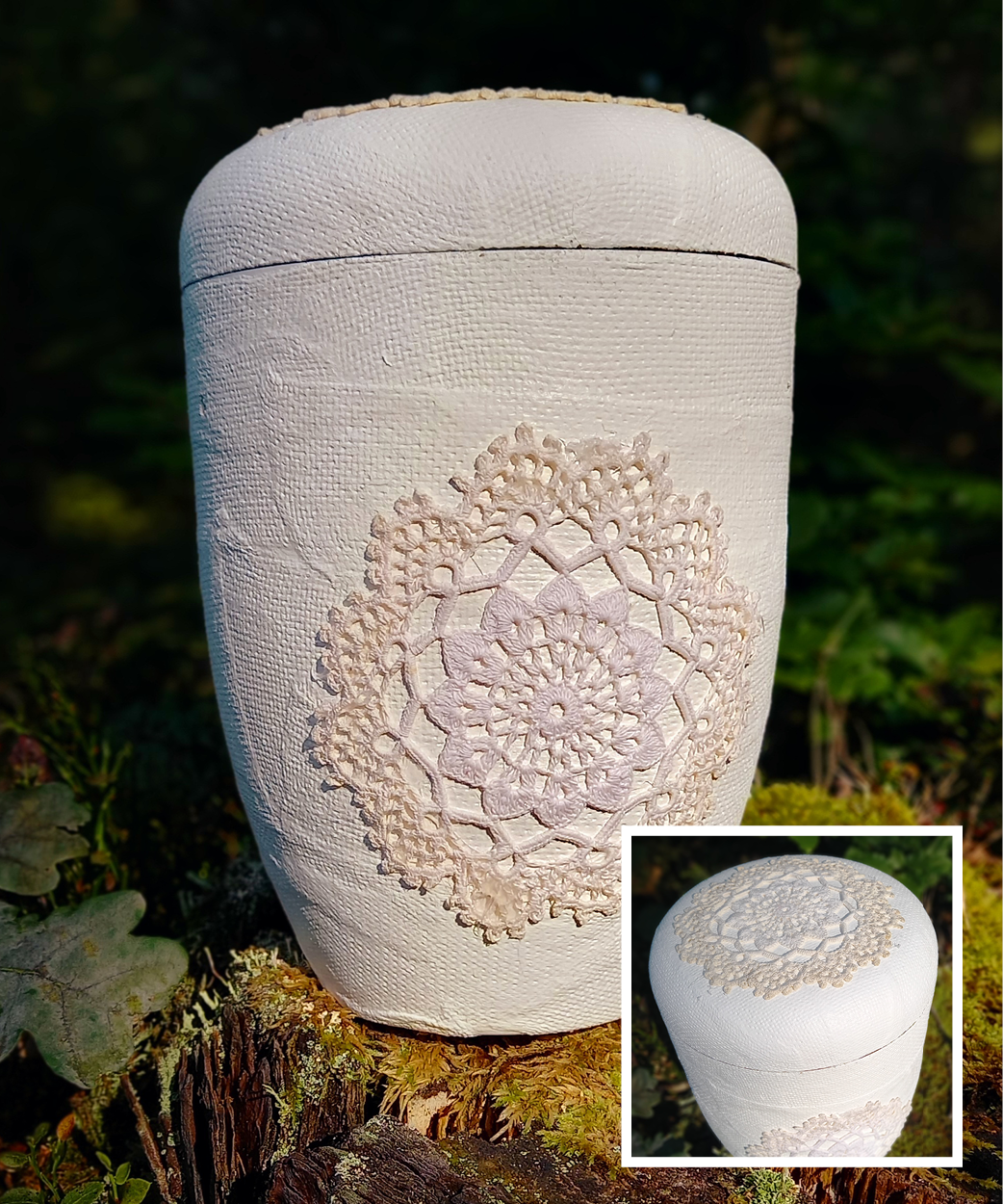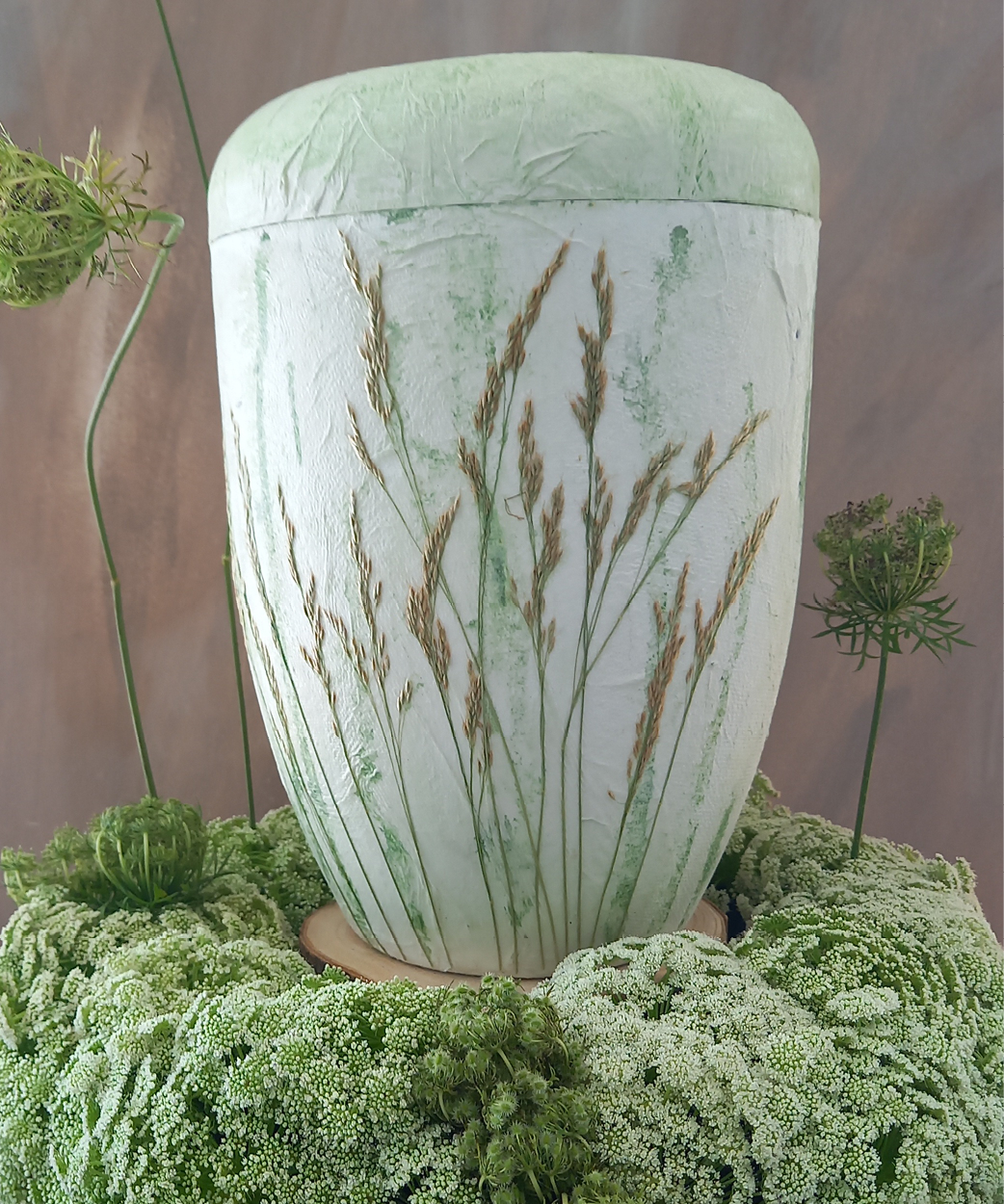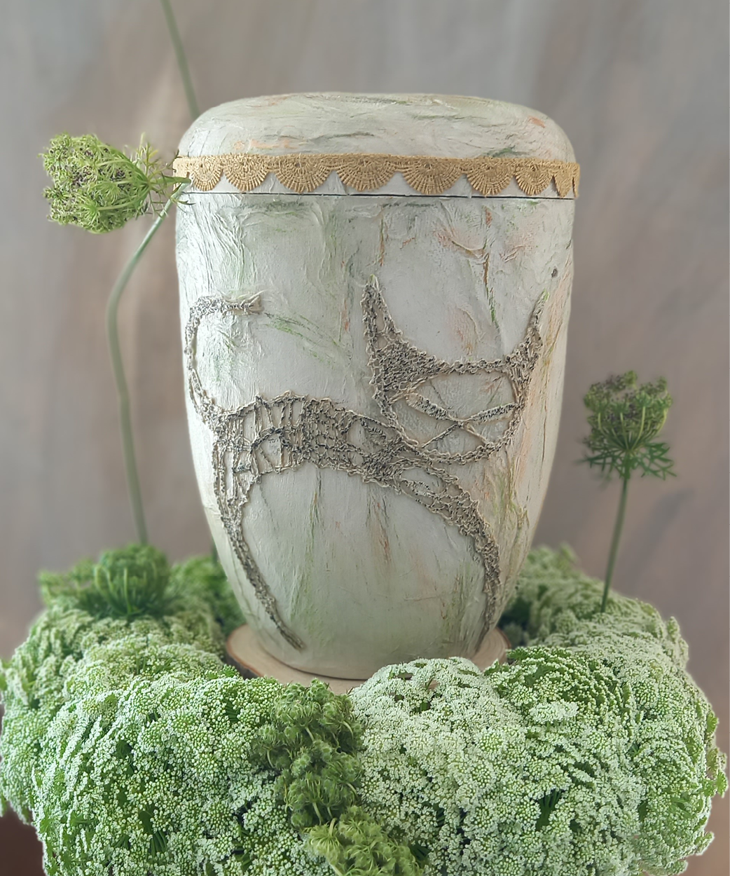 Jede Urne ist ein Unikat das in liebevoller und achtsamer Handarbeit entstanden ist. Falten, Risse und Unebenheiten erzählen die Geschichten gelebter Leben und verleihen jeder Urne ihre besondere Authentizität und Tiefe.