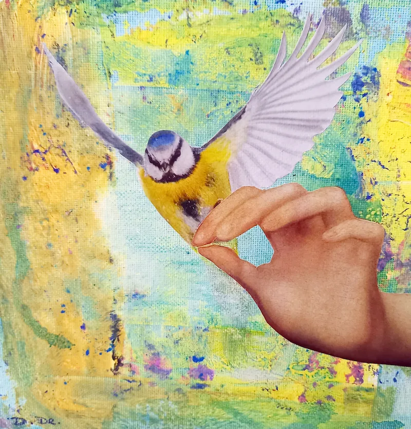 Diese Erfahrung hat meinen Weg grundlegend verändert. Sie hat mich zur Kunsttherapie geführt, zu einem Feld, in dem Kreativität, Menschlichkeit und inneres Wachstum miteinander verschmelzen. Parallel dazu entwickelte ich mein ganz persönliches Ausdrucksmittel – die Objekt-Collage – und erzählte meine Geschichten auf Koffern, Stühlen und Bildern.